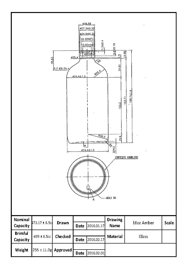 16oz Cobalt Blue Glass Boston Round Bottle 28-400